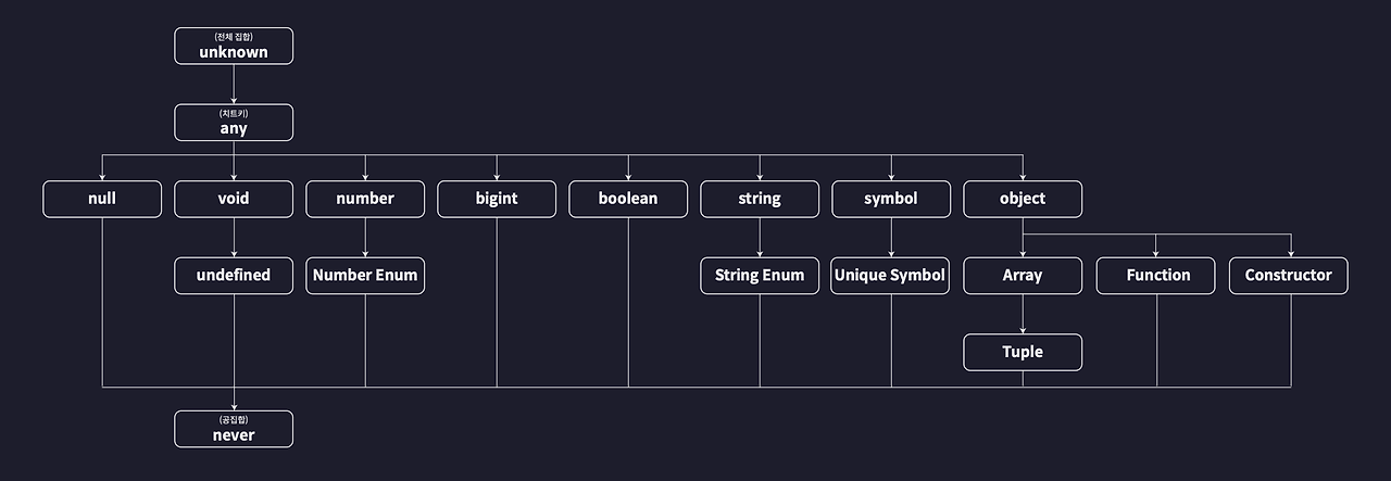 전반적인 타입스크립트의 계층 구조는 아래 사진을 참고해보시기 바랍니다.