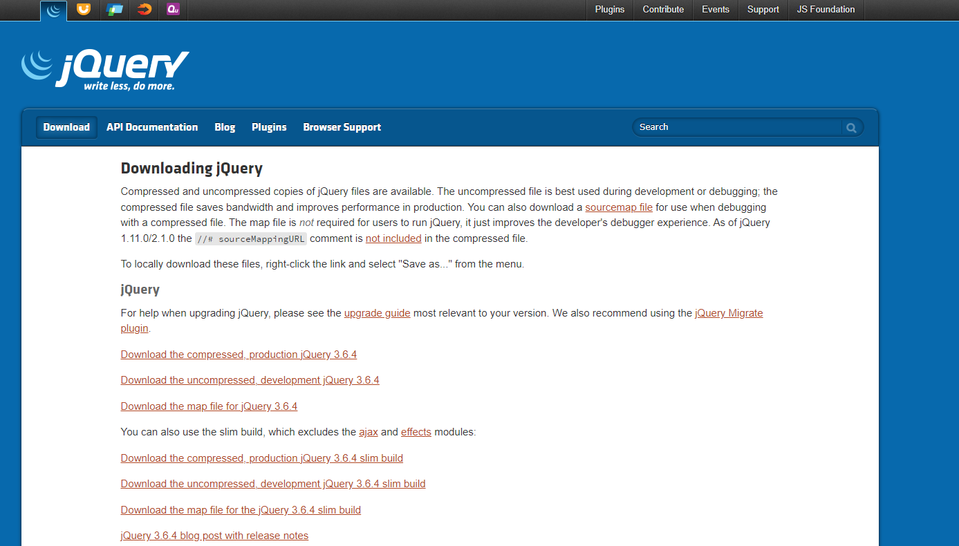 1. jQuery 사이트에 접속해서 오른쪽 상단의 주황박스 'Download jQuery'를 클릭해줍니다.